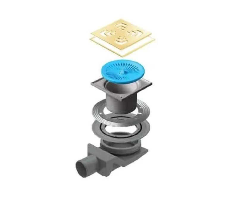 "Дизайн: металл с перфорацией Tide / Square / Drops, покрытие - хром/позолота 24К (999 проба). Базы слива: 1 - с одним выходом, 2 - с 1 выходом/1 входом, 3 - с 1 выходом/3 входами, 4 - S-образный, Vertical - вертикальный выпуск. Материалы: металлические детали - нержавеющая сталь AISI 304 SS, корпус - прочный, экологичный ABS полипропиллен. Технические характеристики: размеры решетки 100х100 мм, 150х150 мм, пропускная способность 48 л/мин, D=50 мм, поворот базы 360°, минимальная высота монтажа - 78 мм (для баз 1,2,3), 71 мм (для базы 4), 69 мм (для базы Vertical), гидрозатвор. "
