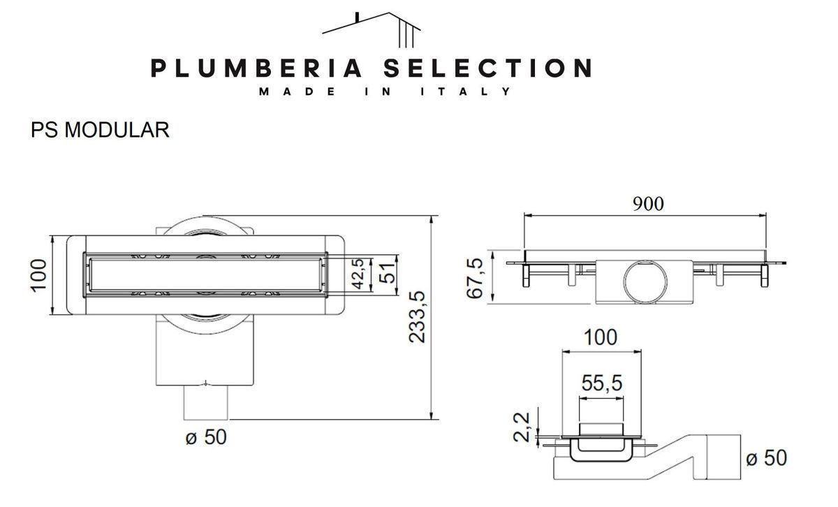 —Душевой лоток Plumberia Selection PSM MODULAR PSM90MT 90х5 нержавеющая сталь