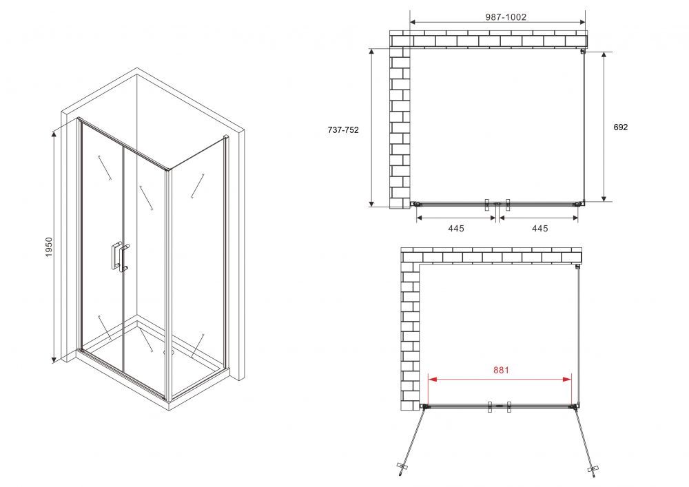 —Душевой уголок Abber Sonnenstrand AG04100BC-S75B 75х100 стекло прозрачное профиль черный без поддона