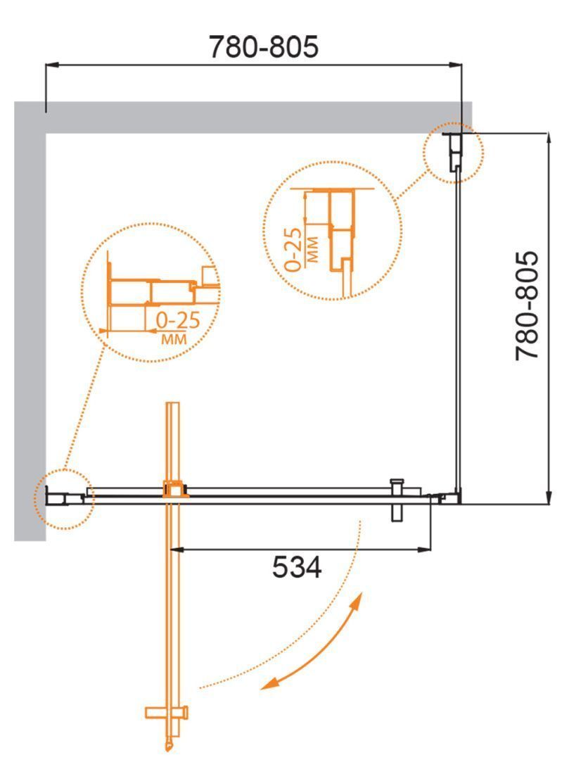 —Душевой уголок Cezares MOLVENO MOLVENO-A-1-80-C-Cr-IV 80х80 стекло прозрачное профиль хром глянцевый без поддона