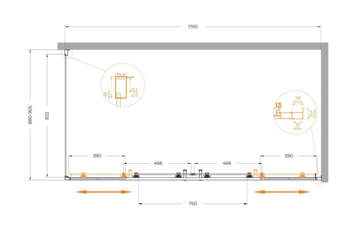 Ширина изделий до 180 см с уникальной возможностью создания еще больших размеров за счет дополнительных неподвижных элементов шириной 20 и 30 см.<br>