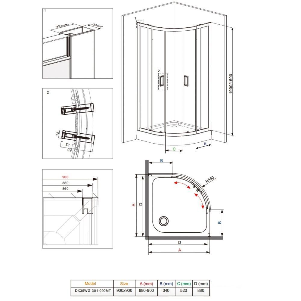Высота 1900 мм широкая входная зона и вместительное внутреннее пространство комфортны для людей любой комплекции. Двери ограждения оснащены роликами для плавного и бесшумного хода. В закрытом виде створки герметично блокируют мокрую зону избавляя от необходимости уборки ванной комнаты после принятия душа.