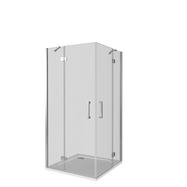 - Угловые (артикул CR) – ограждения с двумя открывающимися дверьми и входом с угла: 900*900, 1000*1000 мм.