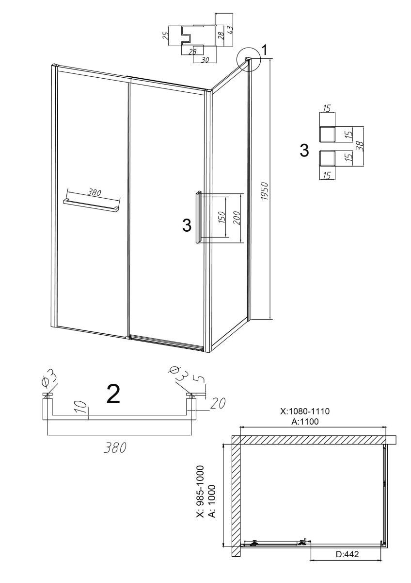 —Душевой уголок Grossman Style 120.K33.05.1110.21.00 110х100 стекло прозрачное профиль черный без поддона