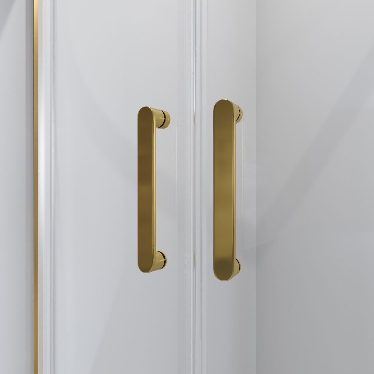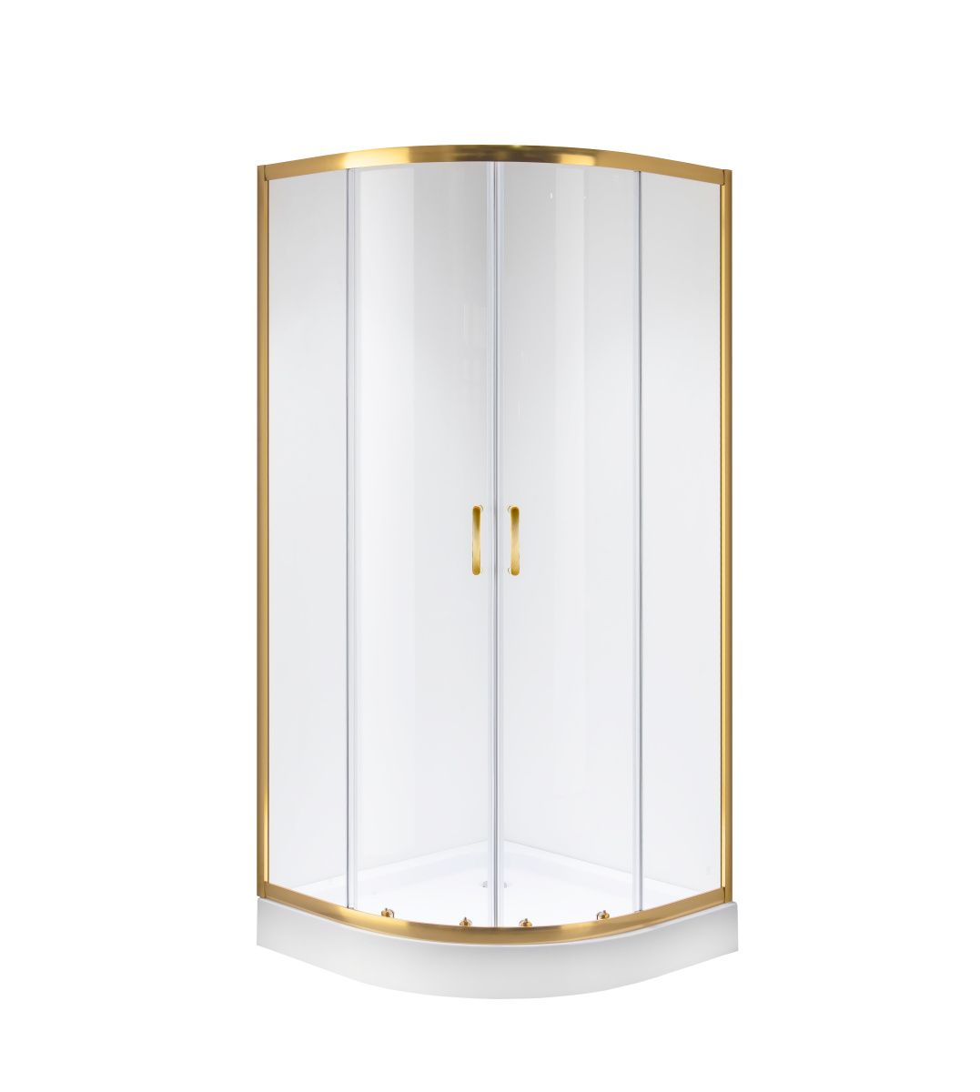 Душевое ограждение выполнено из анодированного аллюминия с желто золотым покрытием. Ролики, саморезы, ручки,  заглушки в цвет ограждения. Пластиковые уплотнители между креплениями предотвращают скапливание влаги и микробов, что сохраняет долговечность ограждения. Металлические ручки. Двойные ролики с металлическими креплениями.