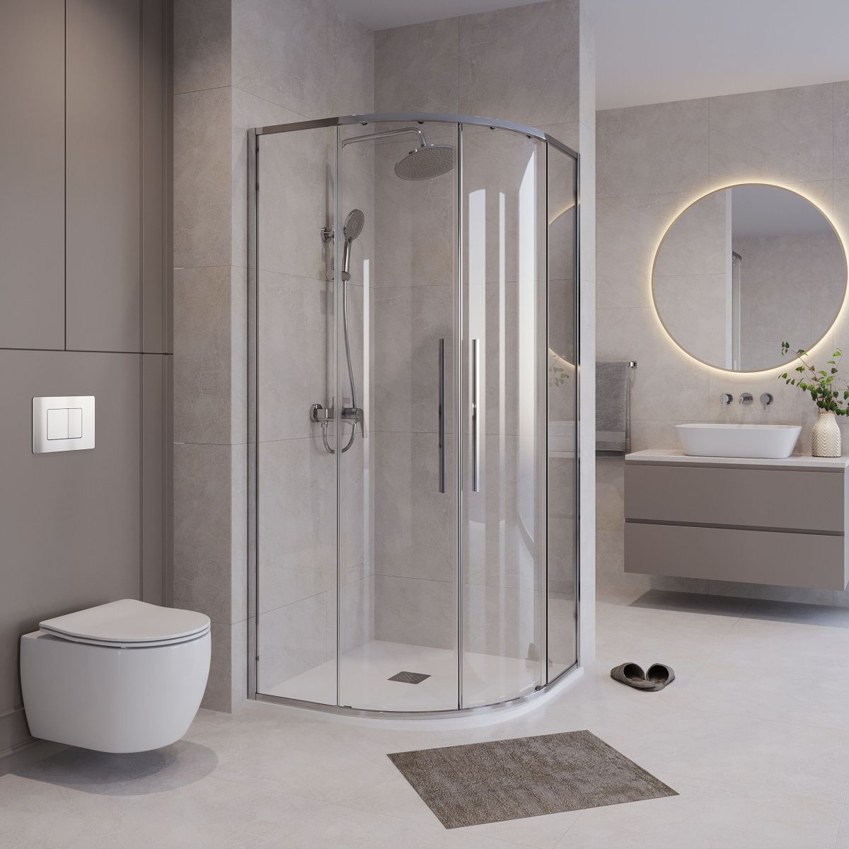 Преимуществом данного ограждения является быстрая сборка. Кроме того, пластиковые ограничители дверей легко извлекаются из профиля для удобства уборки, так как не крепятся винтами. Душевое огаждение может устанавливаться как на поддон, так и на плитку.
