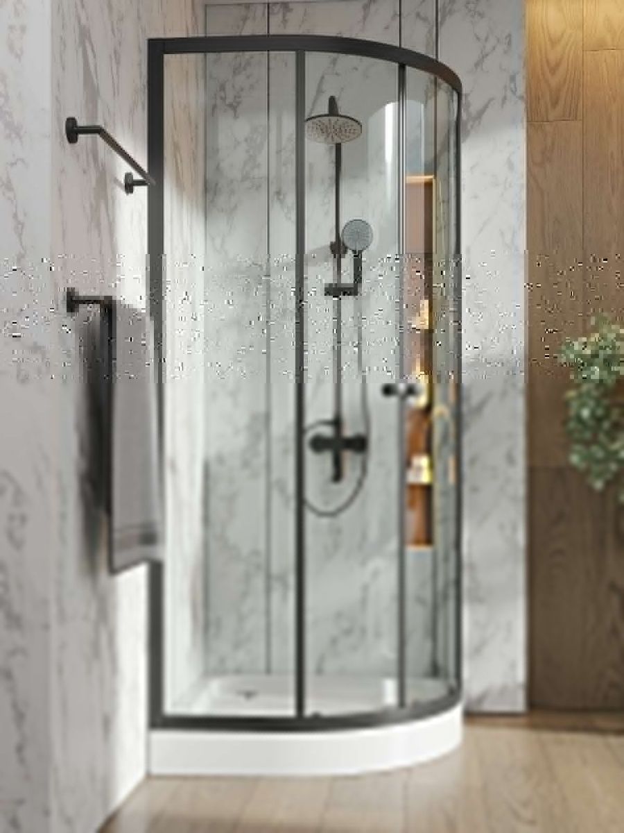 —Душевой уголок Orange E01-090TB 90х90 стекло прозрачное профиль черный с поддоном