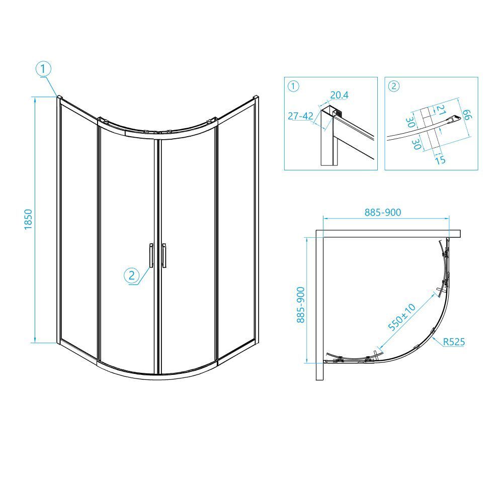 Изделие имеет высоту 1850 мм, что позволяет комфортно использовать его людям разного роста. Душевой уголок CL-53 подходит для использования в любом помещении, так как его компактные размеры не занимают много места.