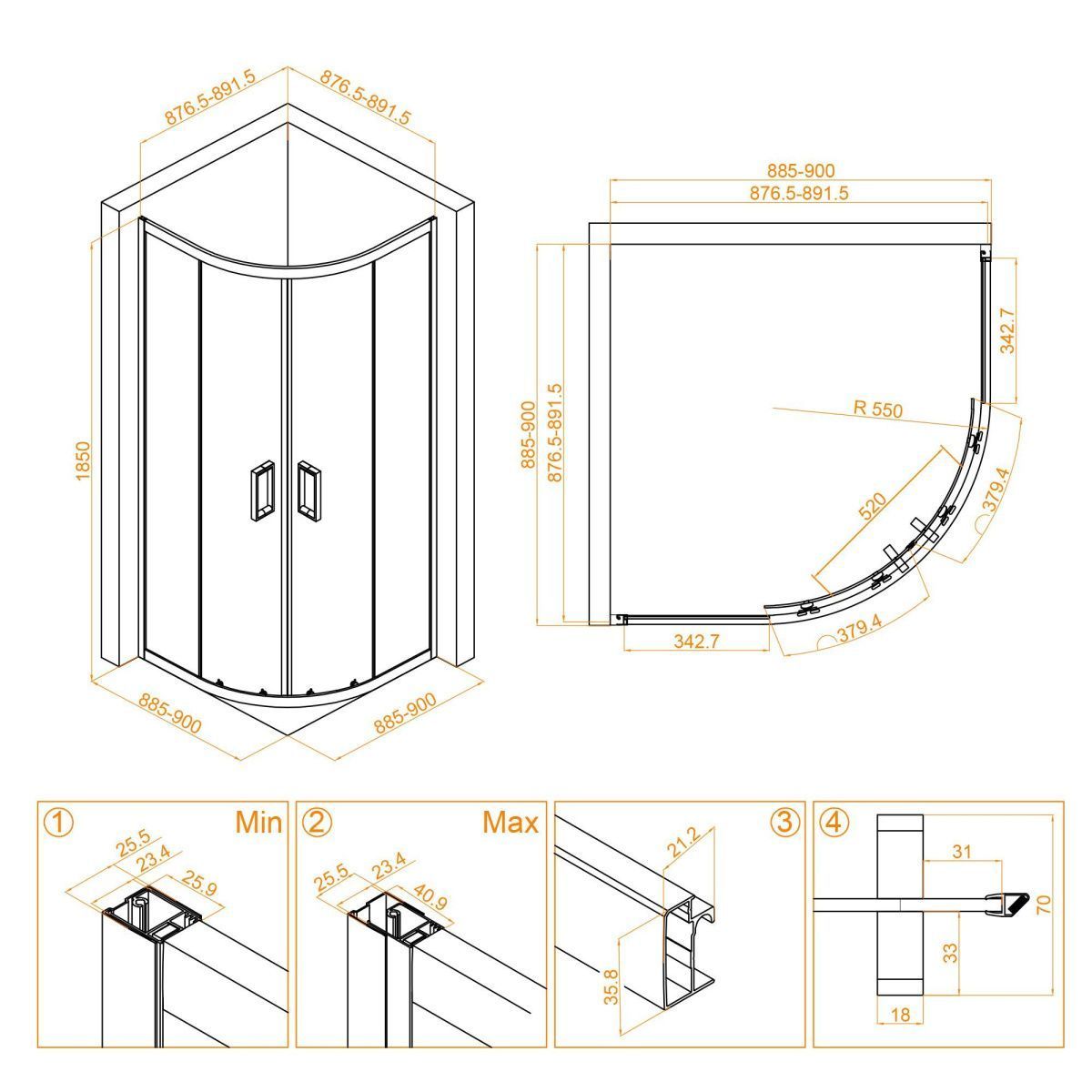 Профиль уголка выполнен в стильном хромированном цвете, который придает товару блеск и изысканность. Профиль имеет специальную регулируемую конструкцию, что позволяет подогнать его к любой кривизне стен в ванной комнате. Также раздвижные двери уголка обеспечивают удобный доступ кнутри, гарантируя максимальный комфорт и практичность при использовании.