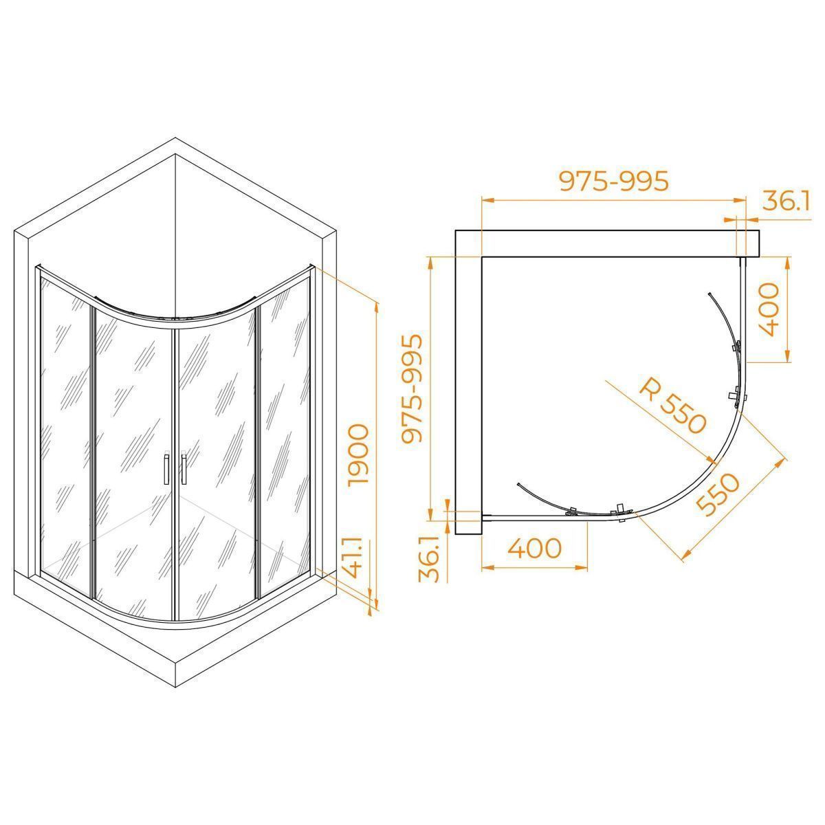 Высота данного душевого уголка составляет 1900 мм, что обеспечивает достаточное пространство для комфортного принятия душа. Высота, в сочетании с остальными параметрами, делает этот уголок идеальным выбором для семейного использования и для людей различного роста.