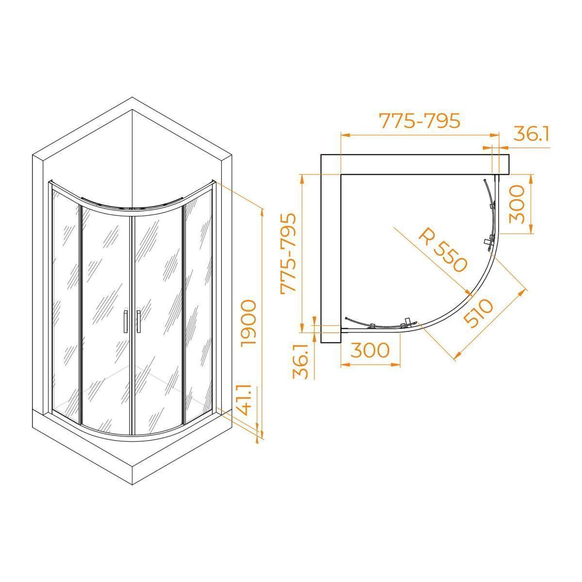 Высота данного душевого уголка составляет 1900 мм, что обеспечивает достаточное пространство для комфортного принятия душа. Высота, в сочетании с остальными параметрами, делает этот уголок идеальным выбором для семейного использования и для людей различного роста.