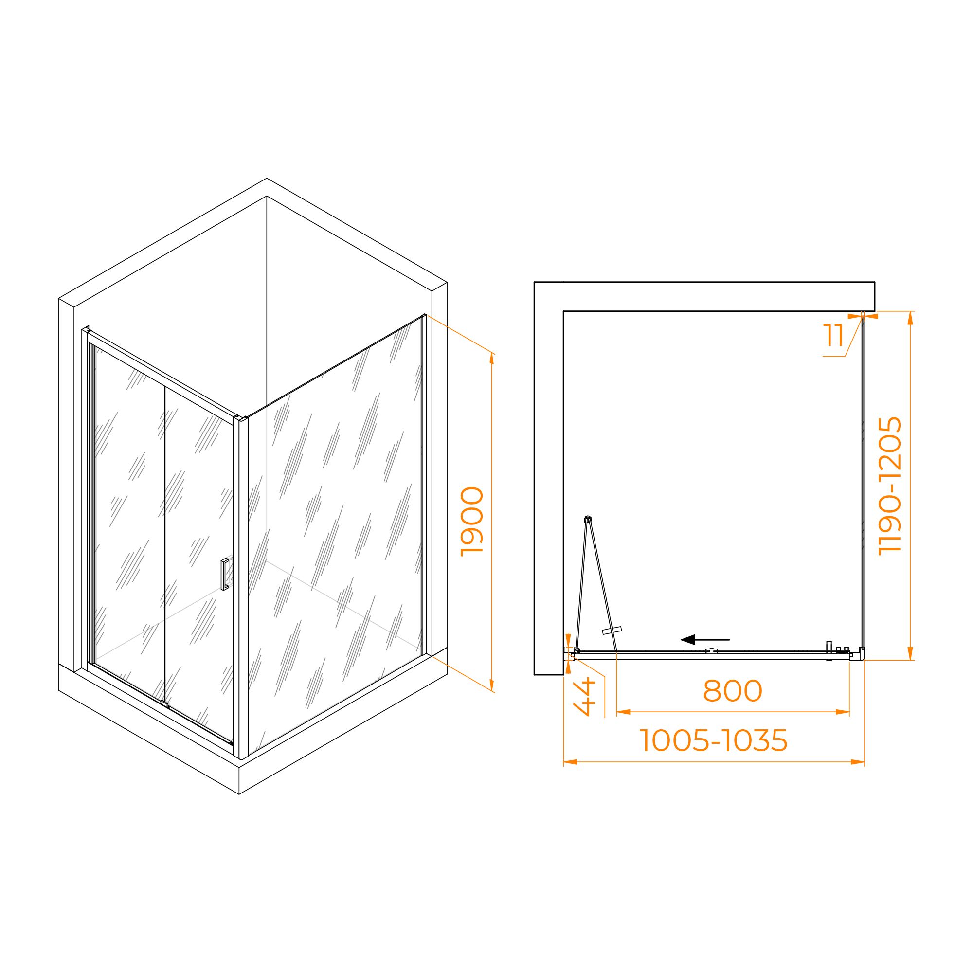 Высота душевого угла составляет 1900 мм, что позволит вам свободно принимать душ и не ощущать дискомфорта. Такие размеры подойдут как для высоких людей, так и для тех, кто предпочитает низкий душевой уголок.