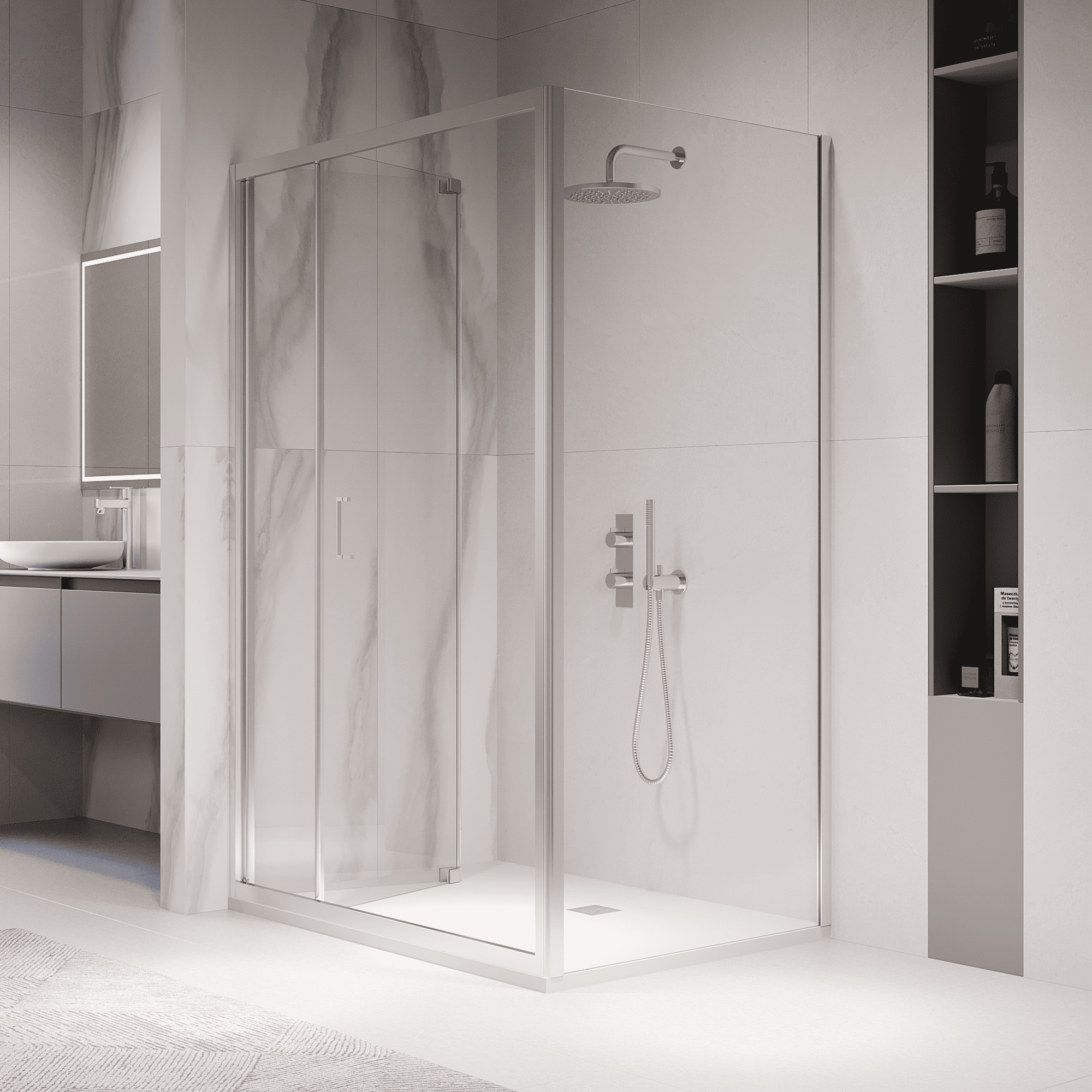 Складная конструкция дверей позволяет экономить пространство в ванной комнате. Вы можете легко открыть и закрыть двери, не беспокоясь о том, что они будут мешать или создавать неудобство в процессе использования ванной комнаты.