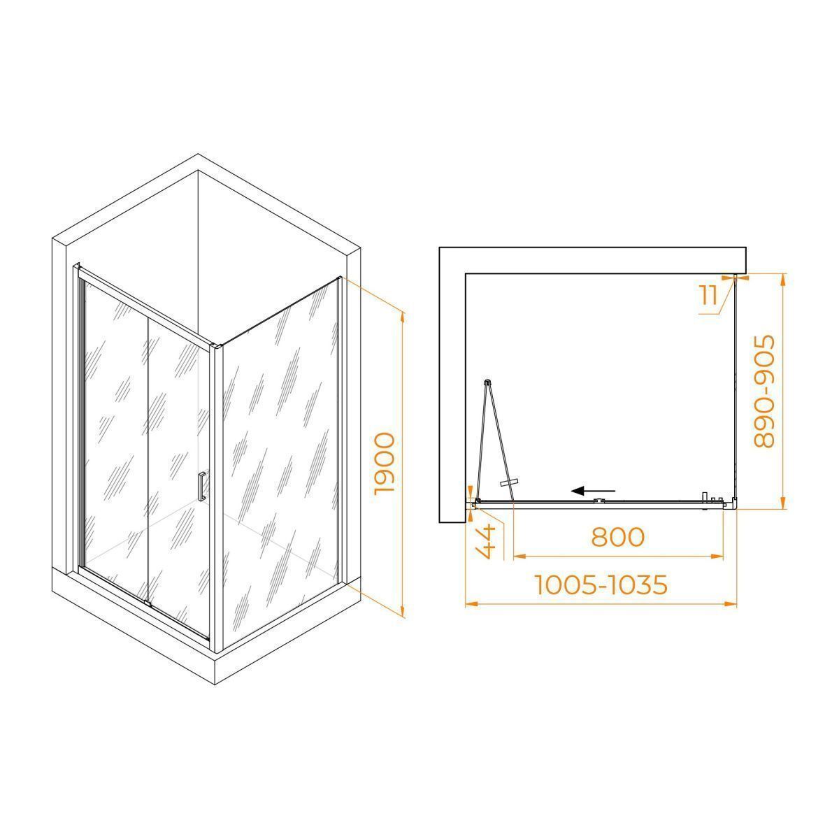 Высота душевого угла составляет 1900 мм, что позволит вам свободно принимать душ и не ощущать дискомфорта. Такие размеры подойдут как для высоких людей, так и для тех, кто предпочитает низкий душевой уголок.