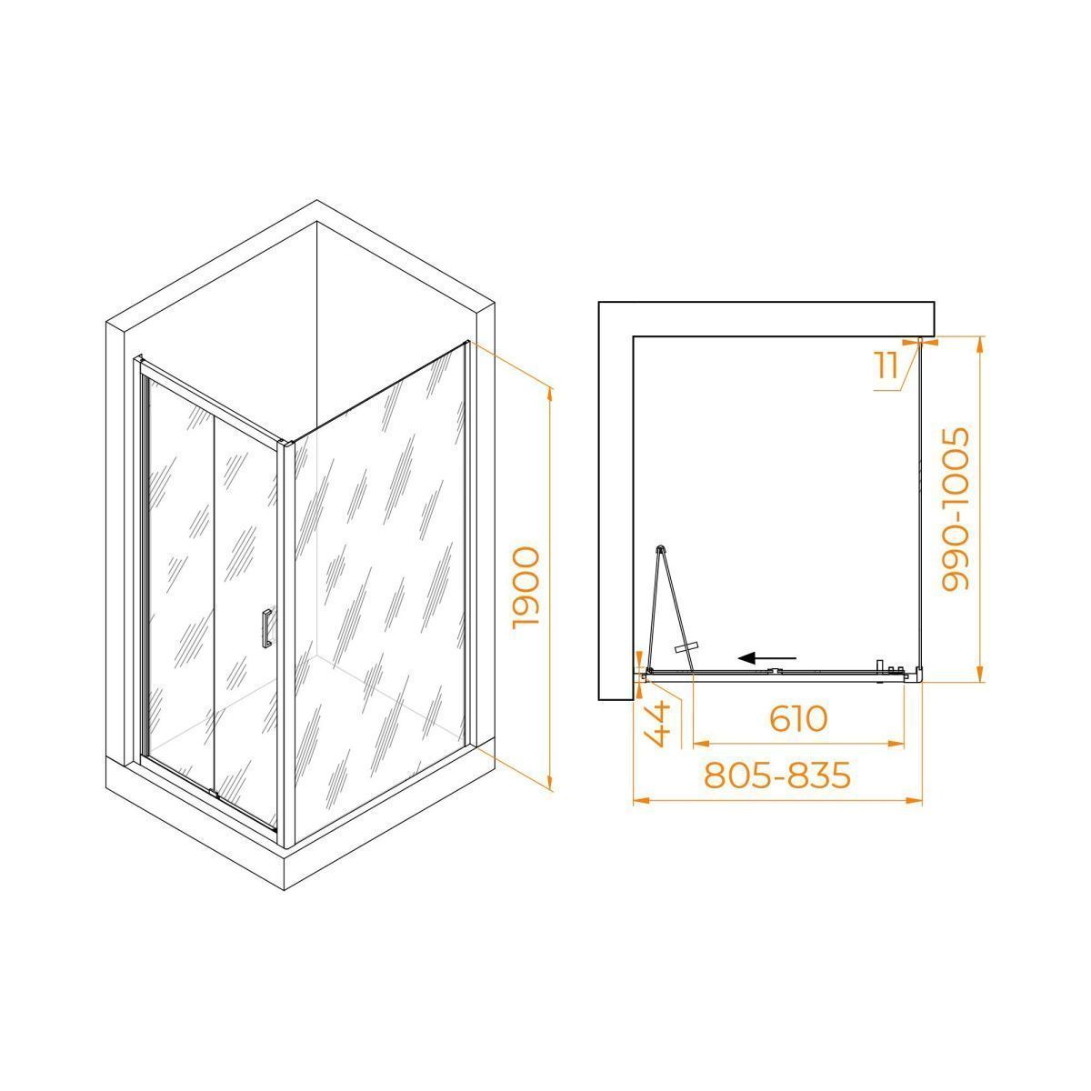 Высота душевого угла составляет 1900 мм, что позволит вам свободно принимать душ и не ощущать дискомфорта. Такие размеры подойдут как для высоких людей, так и для тех, кто предпочитает низкий душевой уголок.