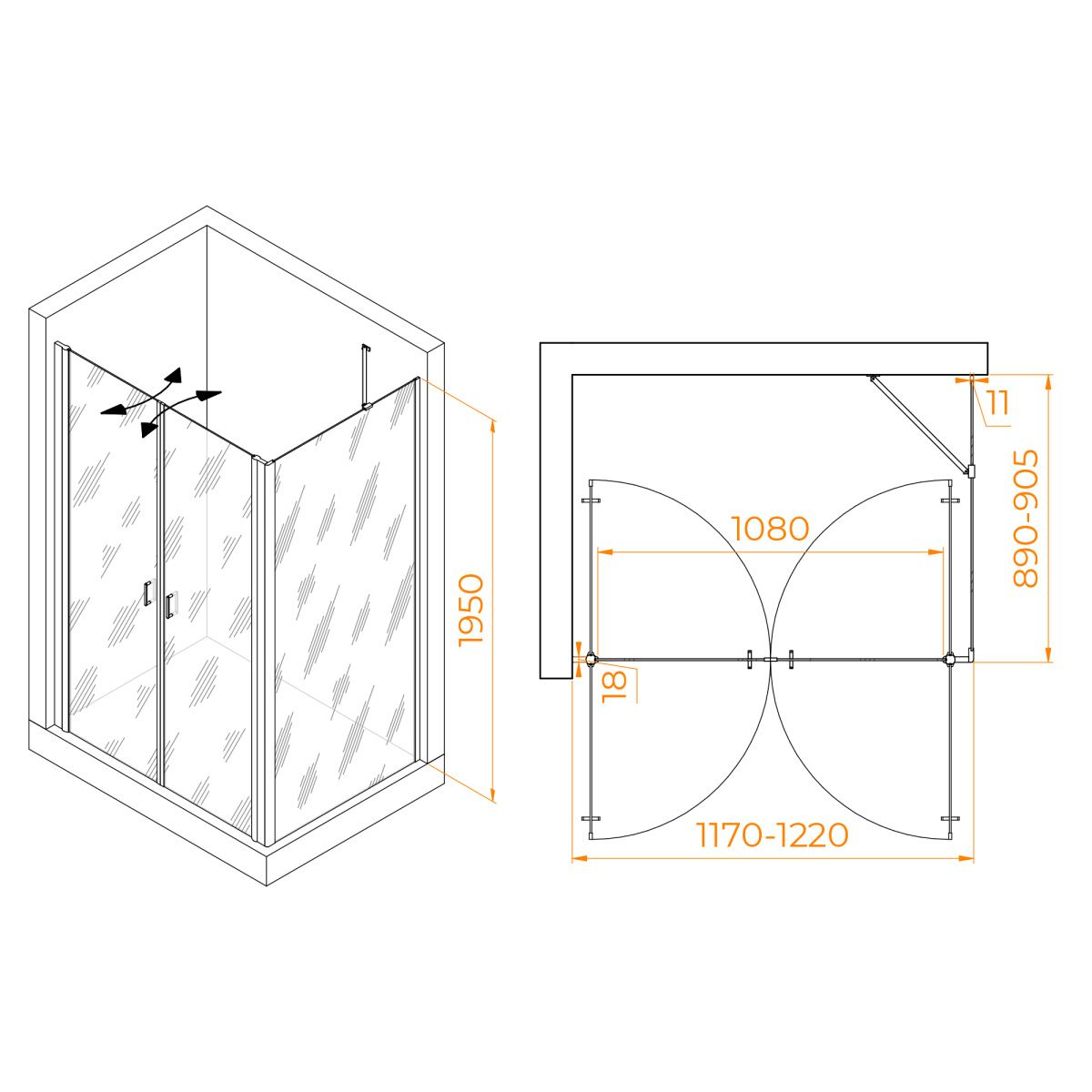 Форма душевого угла прямоугольная, что позволяет оптимально использовать пространство в вашей ванной комнате. Вершины угла округлены, что обеспечивает безопасность и комфорт во время принятия душа.
