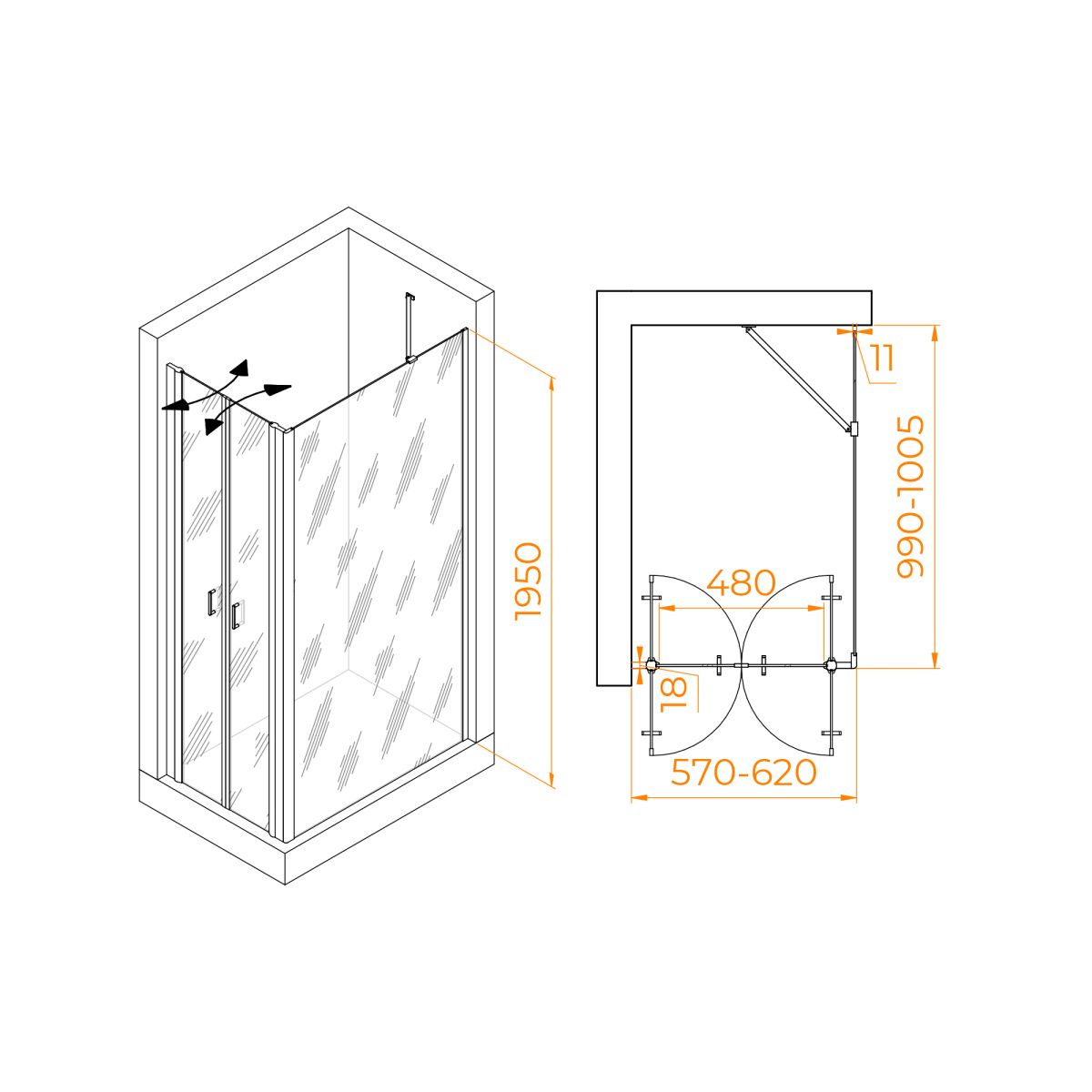 Форма душевого угла прямоугольная, что позволяет оптимально использовать пространство в вашей ванной комнате. Вершины угла округлены, что обеспечивает безопасность и комфорт во время принятия душа.