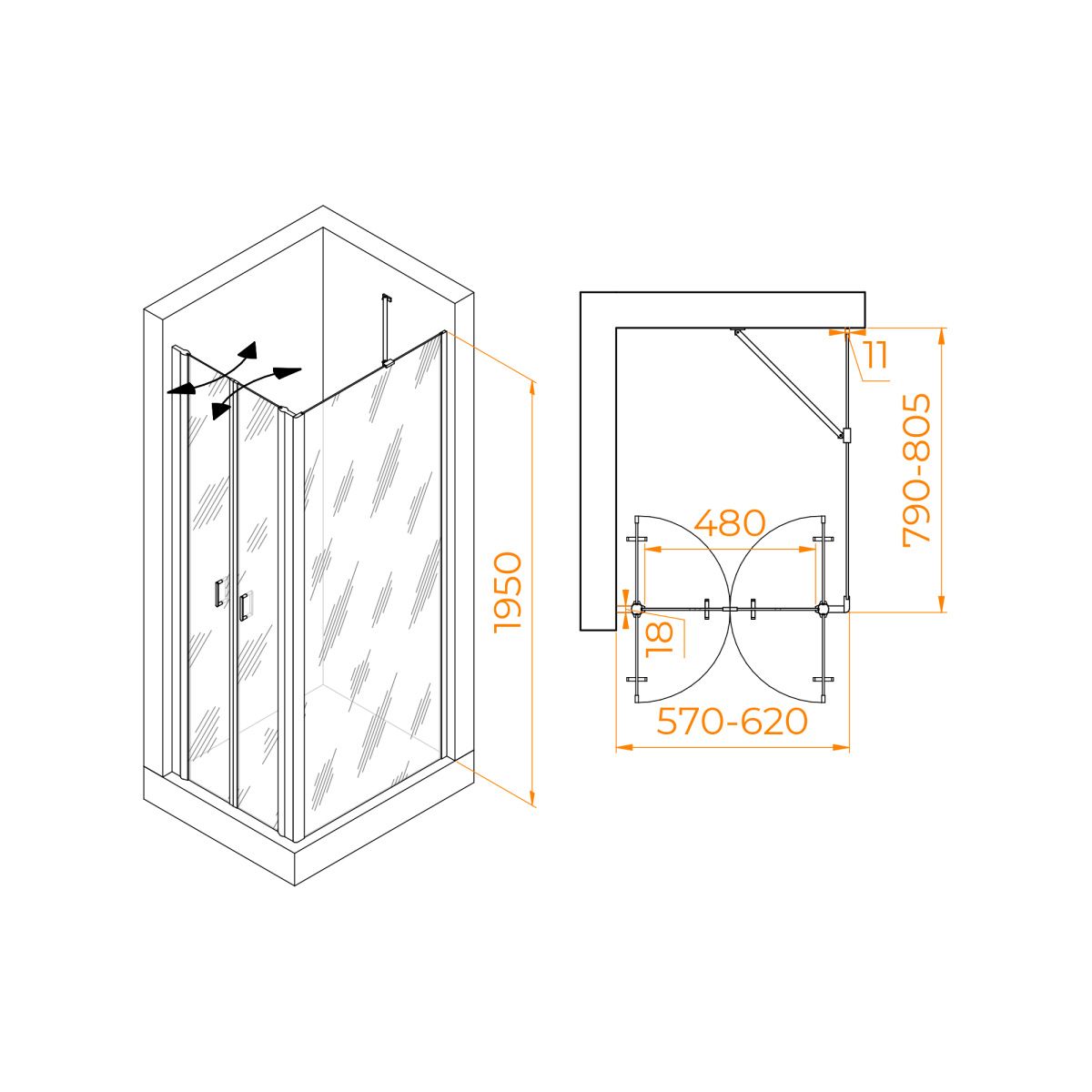 Форма душевого угла прямоугольная, что позволяет оптимально использовать пространство в вашей ванной комнате. Вершины угла округлены, что обеспечивает безопасность и комфорт во время принятия душа.