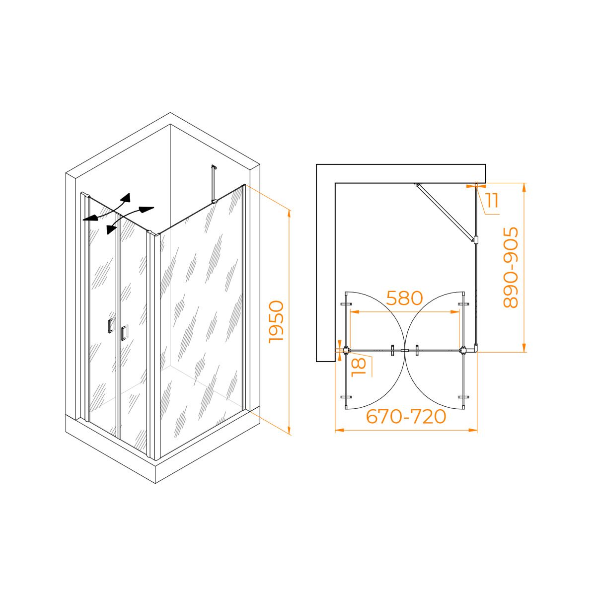 Форма душевого угла прямоугольная, что позволяет оптимально использовать пространство в вашей ванной комнате. Вершины угла округлены, что обеспечивает безопасность и комфорт во время принятия душа.
