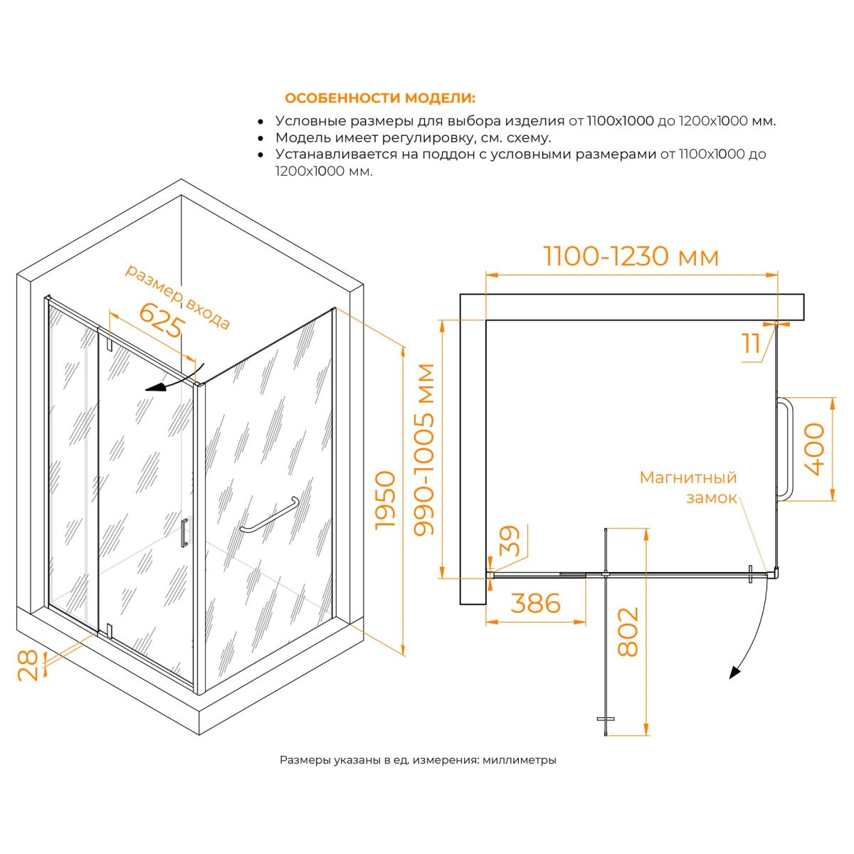 Высота душевого уголка составляет 1950 мм, что обеспечивает комфортную посадку внутри него. Кроме того, этот душевой уголок имеет 1-й класс герметичности, благодаря чему его использование не приведет к протечкам воды в вашей ванной комнате.