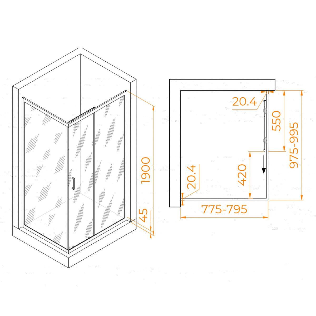 Этот душевой уголок имеет форму прямоугольного душевого угла, который идеально подходит для помещений с просторными душевыми зонами. Высота душевого угла составляет 1900 мм, что обеспечивает комфорт и удобство во время принятия душа.