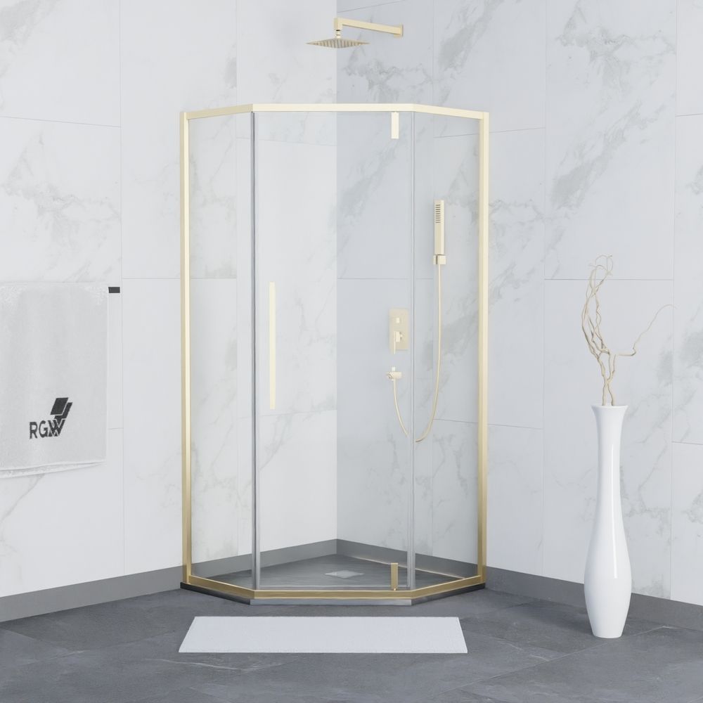Один из главных преимуществ этого душевого уголка - это его прозрачное стекло. Это позволяет создать максимально комфортные условия для принятия душа и придать ванной комнате легкий и прозрачный вид. Цвет профиля, золото brush, способствует созданию элегантного и стильного дизайна.