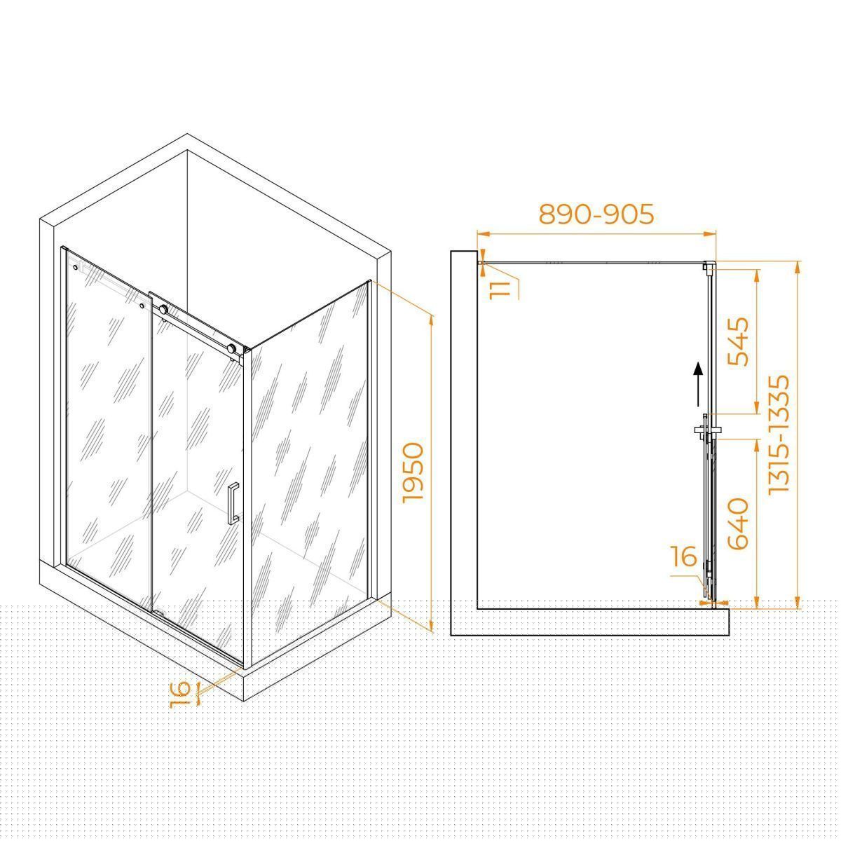 Цвет профиля хром, что придает душевому уголку современный и стильный вид. Высота душевого угла составляет 1950 мм, что позволяет использовать его для любого размера человека.