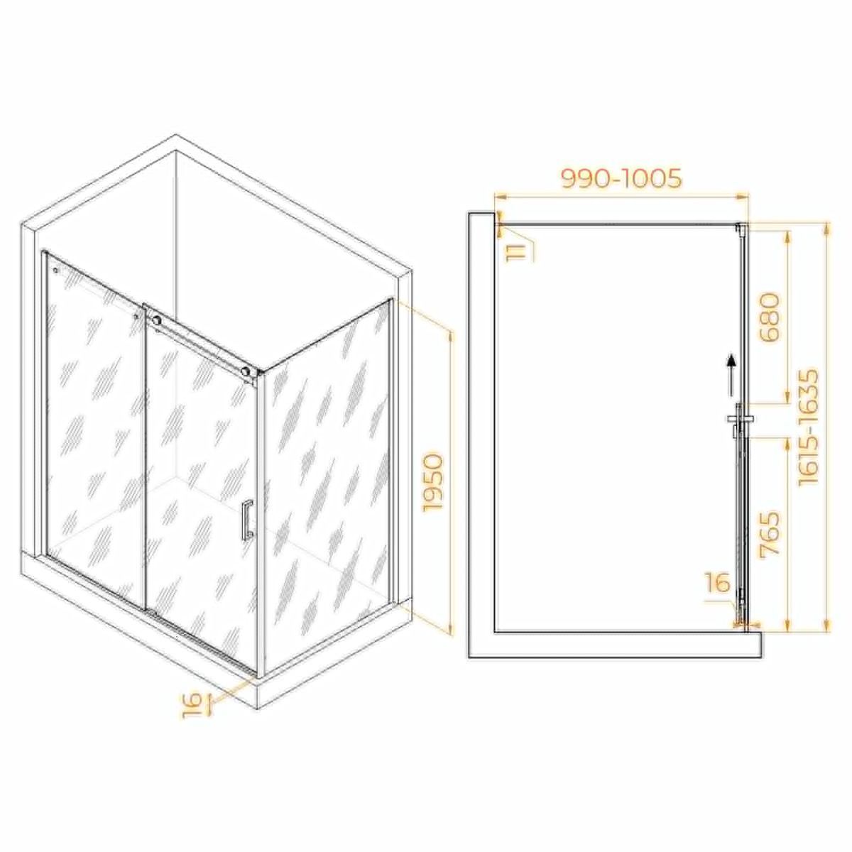 Цвет профиля хром, что придает душевому уголку современный и стильный вид. Высота душевого угла составляет 1950 мм, что позволяет использовать его для любого размера человека.