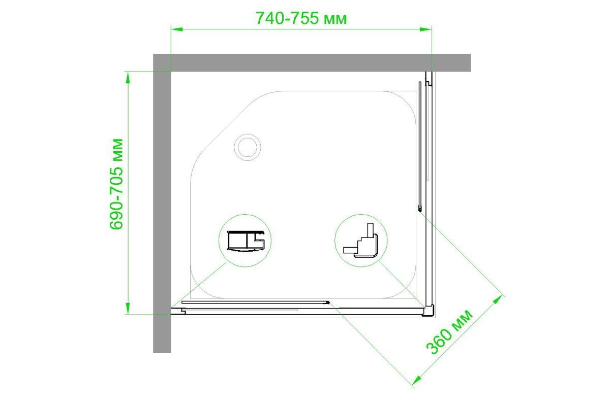 —Душевой уголок Royal Bath HPD RB7075HPD-C-ST 75х70 стекло матовое профиль сатин без поддона