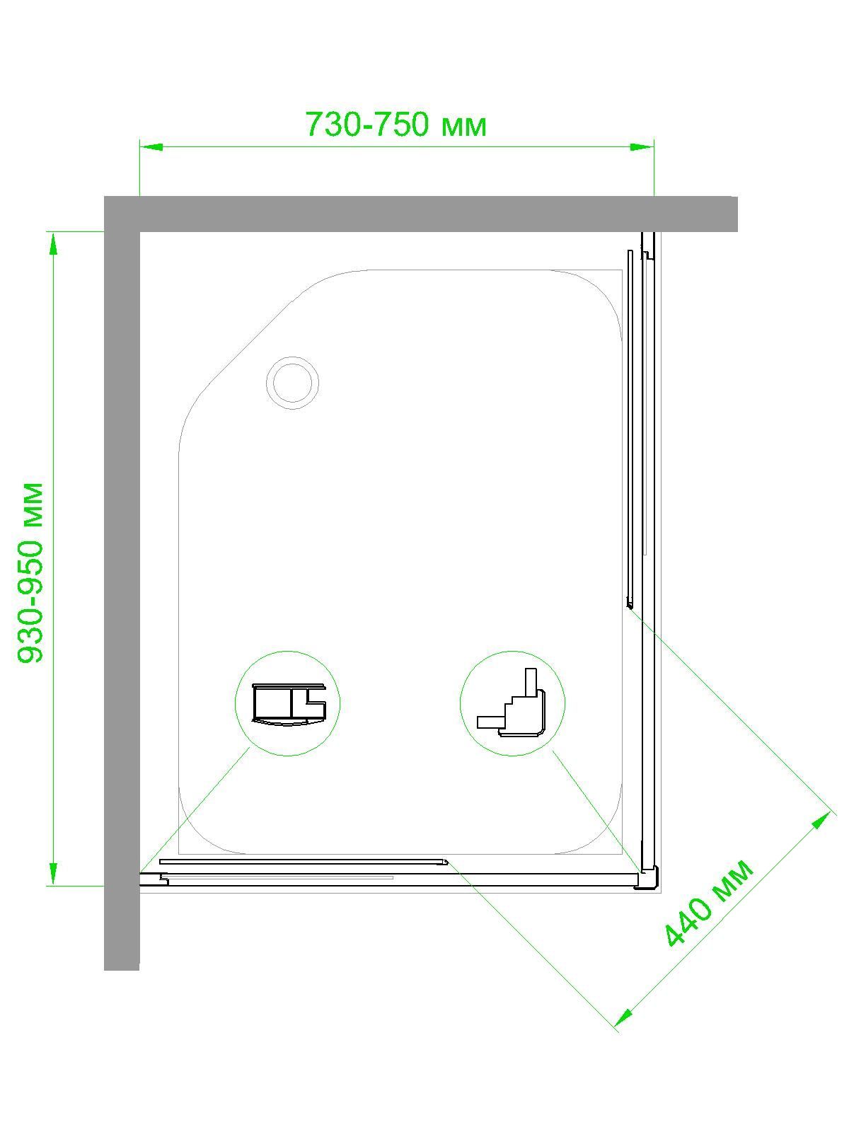 —Душевой уголок Royal Bath HPD RB7595HPD-C-BL 75х95 стекло матовое профиль черный без поддона