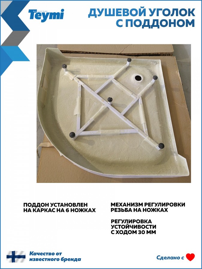 Душевой уголок 80х80 с поддоном Teymi Helmi T00602 — продуманное решение для современных ванных комнат, сочетающее элегантность и функционал. Квадратная форма размером 80х80 см обеспечивает эргономичное использование пространства, отлично вписываясь даже в компактные помещения. Закалённое прозрачное стекло толщиной 5 мм визуально облегчает конструкцию и наполняет интерьер светом, подчёркивая минимализм и чистоту линий. Матовый чёрный алюминиевый профиль придаёт изделию строгий характер, органично дополняя современные дизайнерские концепции. Прочное антикоррозийное покрытие сохраняет эстетичный вид на протяжении всего срока службы. Раздвижные двери на надёжных роликах гарантируют плавное и бесшумное открывание, экономя место и обеспечивая комфортное пользование. Акриловый низкий поддон высотой 125 мм на шести регулируемых ножках позволяет идеально выровнять конструкцию на любой поверхности. Его антискользящее покрытие повышает безопасность, предотвращая скольжение во время приёма душа. Дополнительное антиизвестковое покрытие на стекле облегчает уход, предотвращая образование белого налёта и сохраняя прозрачность. В комплект также входит сифон клик-клак для удобного и быстрого слива воды. Ключевые характеристики: ·         Размер 80х80 см — компактное и функциональное решение ·         Прозрачное закалённое стекло 5 мм — надёжность и визуальная лёгкость ·         Профиль из алюминия в матовом чёрном цвете для современного стиля ·         Раздвижная система дверей для экономии пространства ·         Акриловый низкий поддон с регулируемыми ножками для точной установки ·         Антискользящее и антиизвестковое покрытие для комфорта и лёгкой чистки ·         Универсальная ориентация монтажа Комплектация: два вертикальных профиля, четыре горизонтальных профиля, акриловый поддон, сифон клик-клак, две глухие и две дверные стеклянные секции, силиконовый уплотнитель, ролики, крепежные элементы, документация.