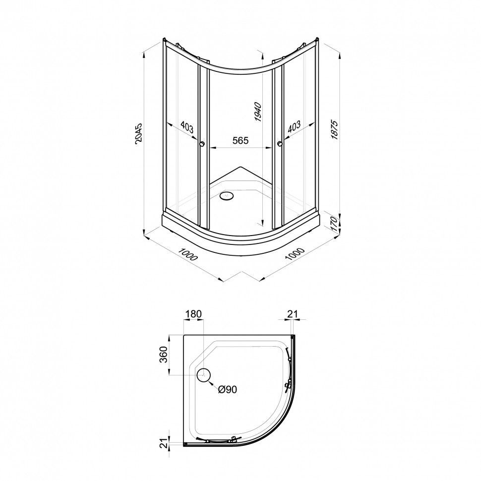 —Душевой уголок Тритон Лайт Щ0000061794 100х100 стекло с рисунком профиль белый с поддоном