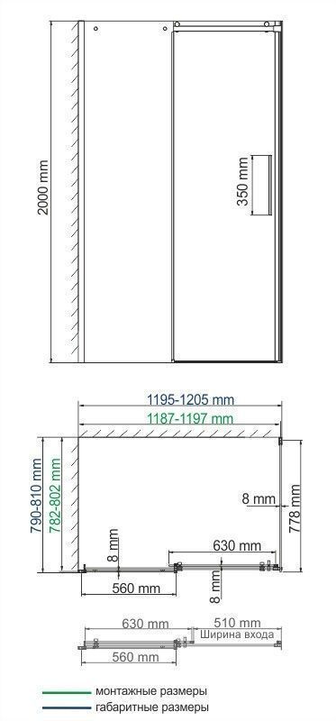 —Душевой уголок Wasserkraft 58R06 120х80 стекло прозрачное профиль хром без поддона