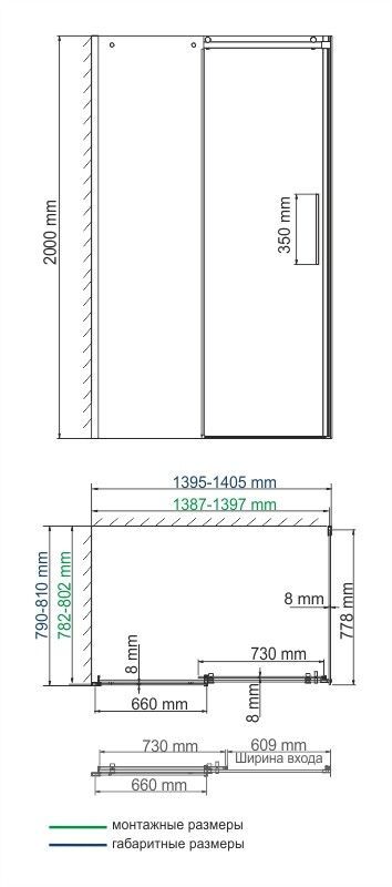 —Душевой уголок Wasserkraft 58R35 140х80 стекло прозрачное профиль хром без поддона