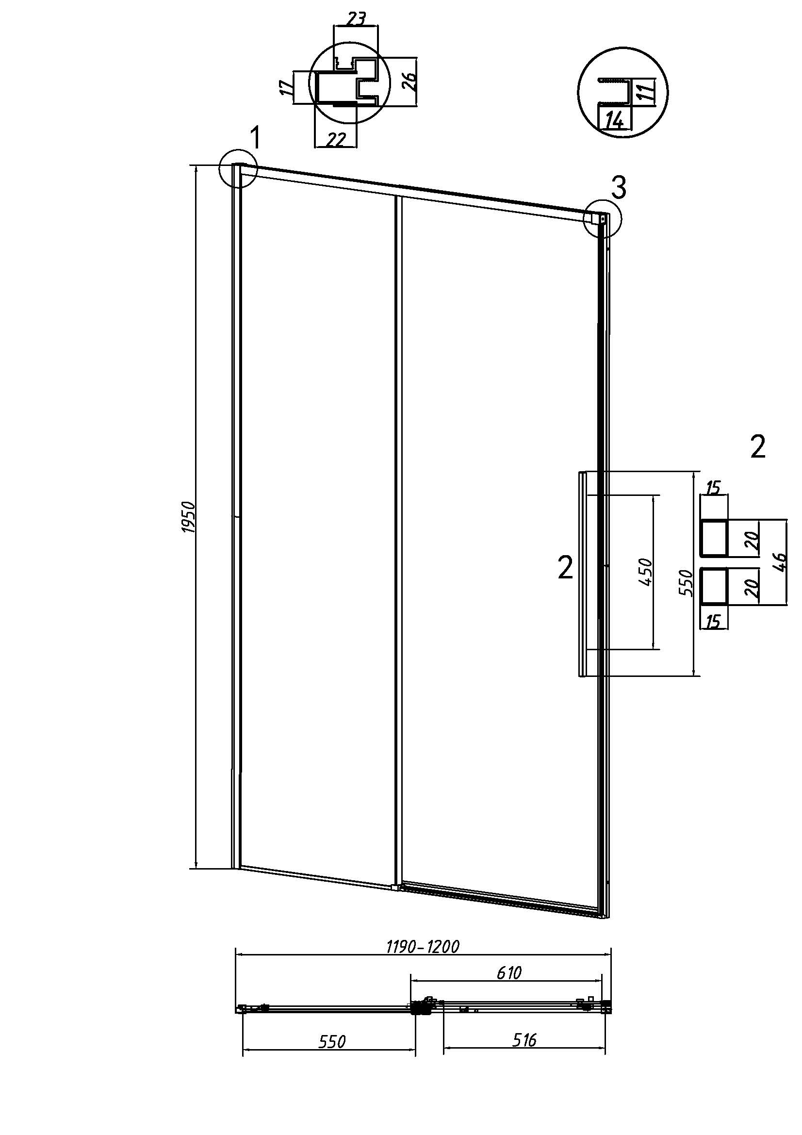—Душевая дверь Grossman Galaxy 100.K33.01.120.42.10 120х195 стекло тонированное профиль графит