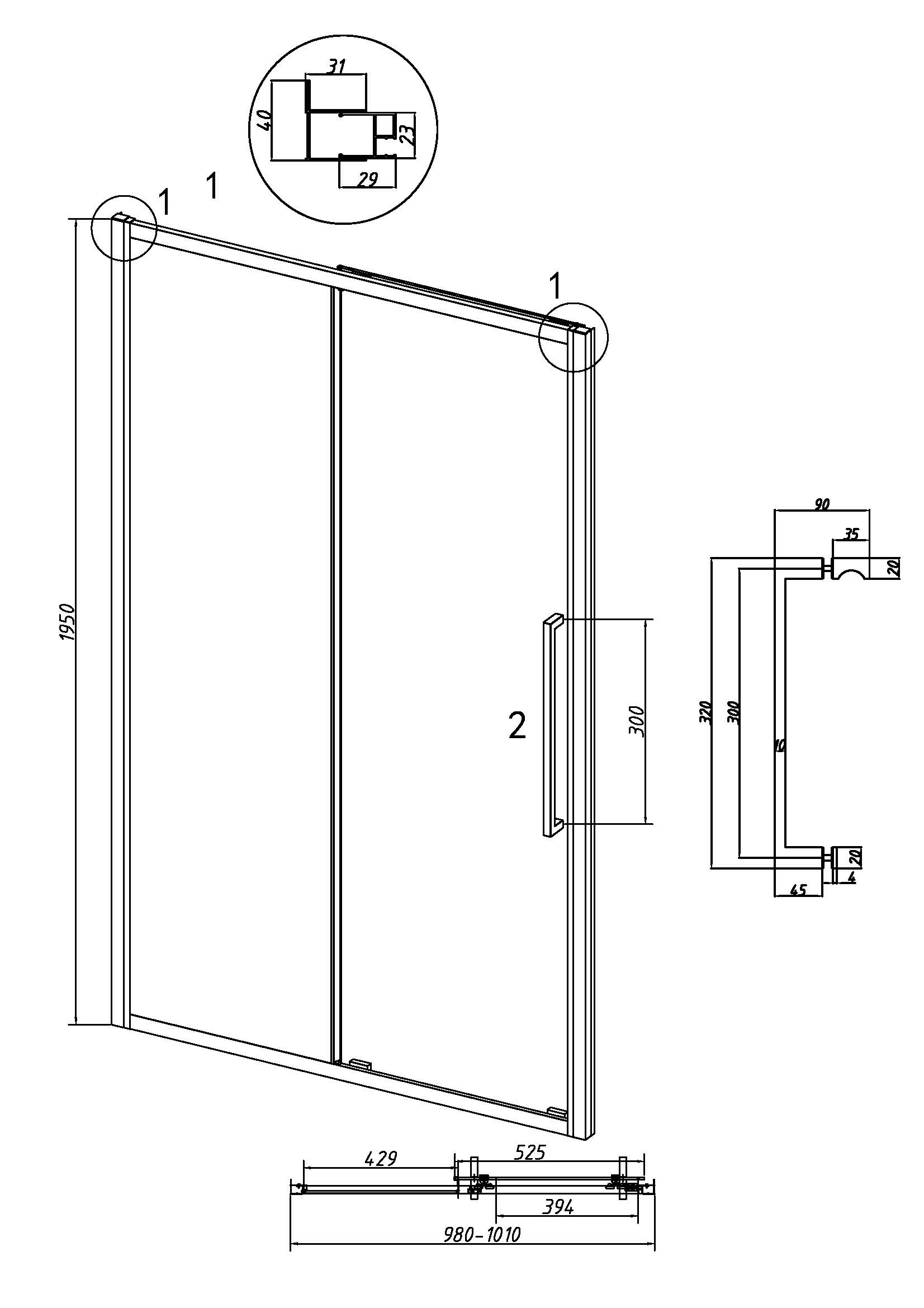 —Душевая дверь Grossman Cosmo 100.K33.02.100.21.00 100х195 стекло прозрачное профиль черный матовый