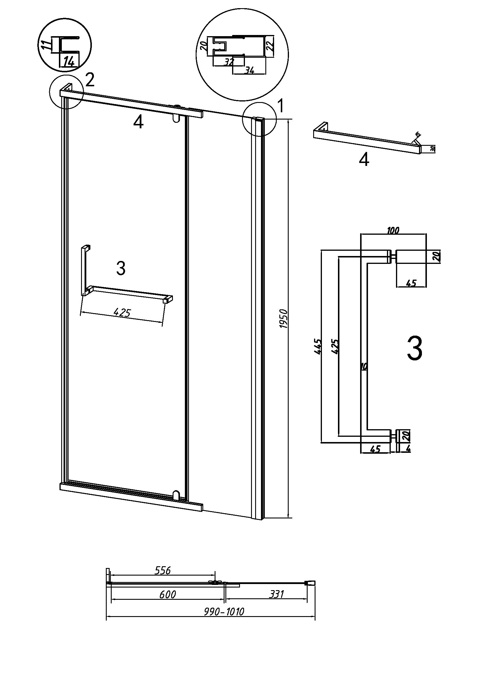 —Душевая дверь Grossman Pragma 100.K33.03.100.21.00 100х195 стекло прозрачное профиль черный матовый