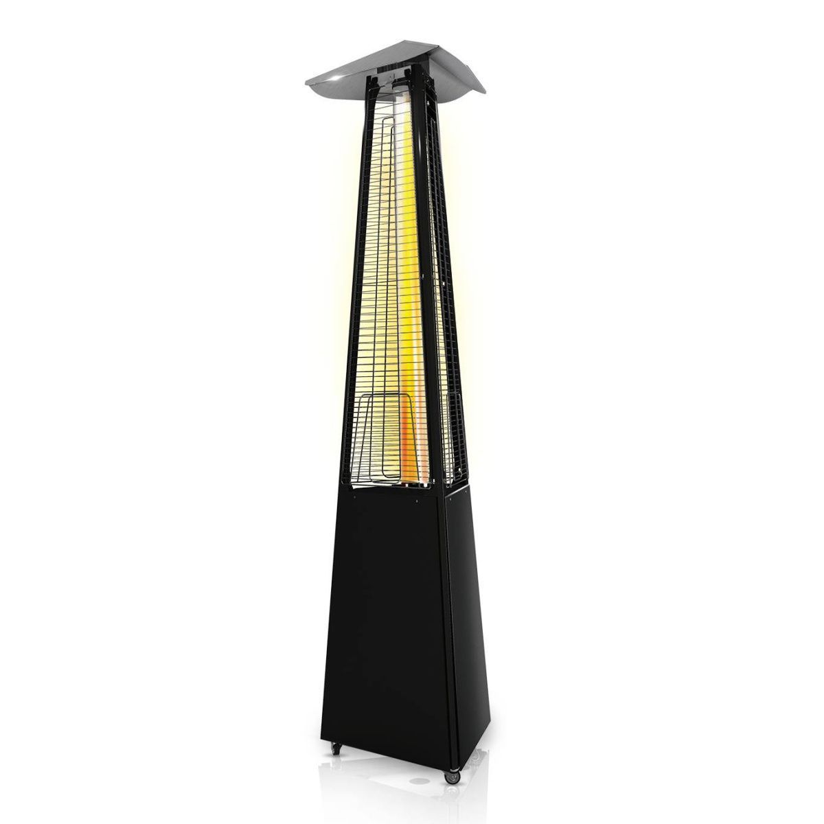 Такая техника широко используется как в общественных местах, так и на частных территориях. Наличие колесиков позволяет быстро переместить агрегат в любую точку ровной площадки. За устойчивость отвечает встроенная защита от опрокидывания. Прибор греет не только качественно, но и эффектно: пламя высотой до 1,5 м горит внутри колбы из термоустойчивого закаленного стекла.