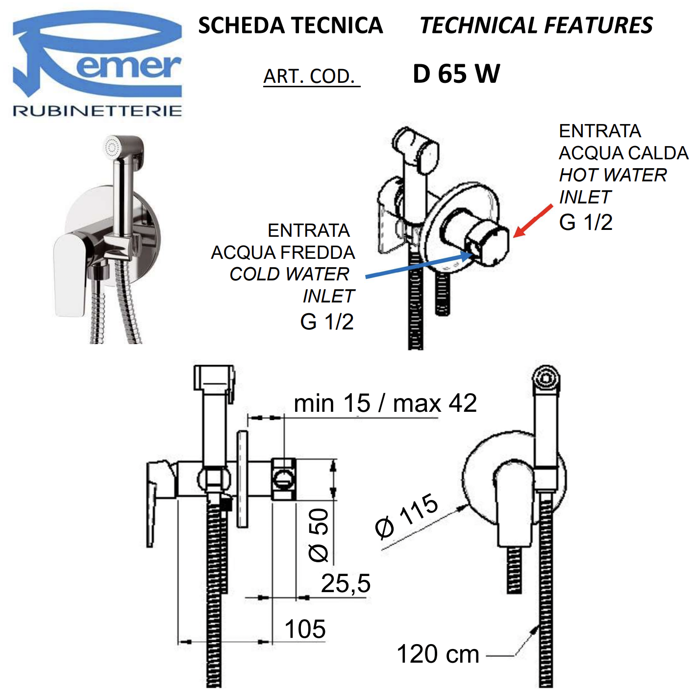 Гигиенический душ со смесителем Remer D65W хром