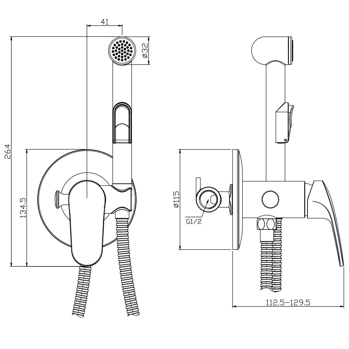 В комплекте:Керамический картридж 35 мм, Аксессуары в комплекте (шланг 1,2 м, лейка гигенического душа с нажимным механизмом с функцией легкой очистки), Металлическая рукоятка