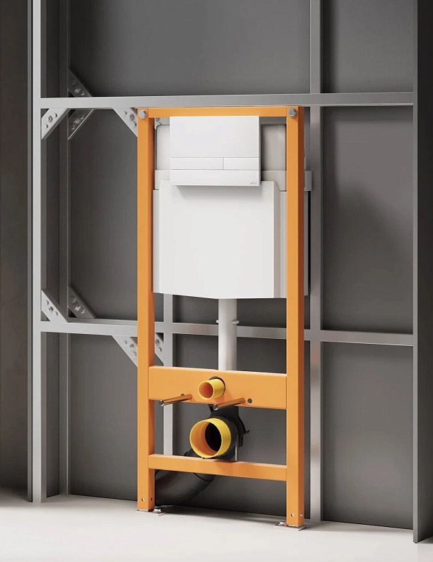 Надёжная конструкция системы инсталляции фиксируется с помощью универсальных креплений, позволяющих отрегулировать глубину монтажа. Кроме того, такие крепления обеспечивают возможность угловой установки рамы. Конструкцией также предусмотрены крепления для унитаза, способные выдерживать нагрузку до 400 кг.