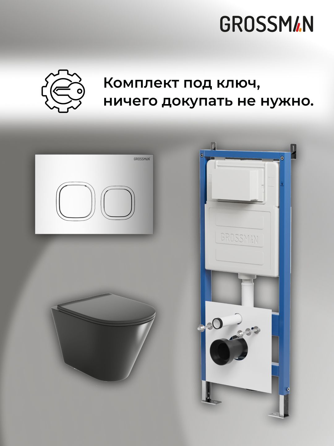 —Инсталляция + кнопка смыва + унитаз Grossman Cosmo 97.4477BMS.02.100
