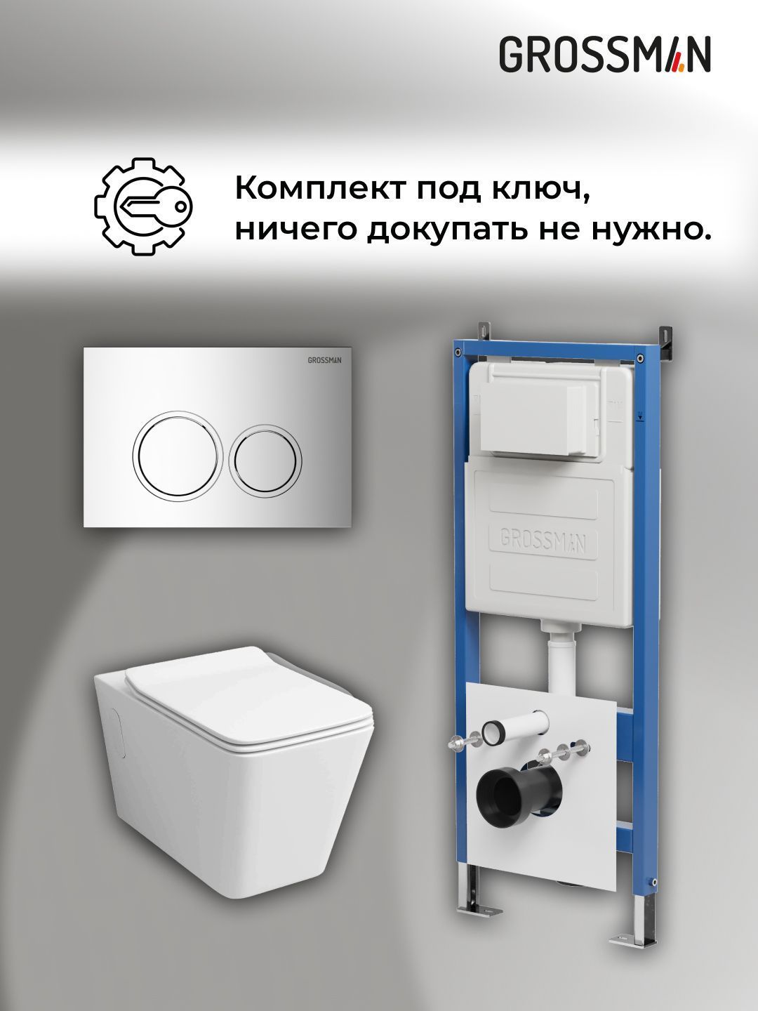 —Инсталляция + кнопка смыва + унитаз Grossman Galaxy 97.4414S.01.100