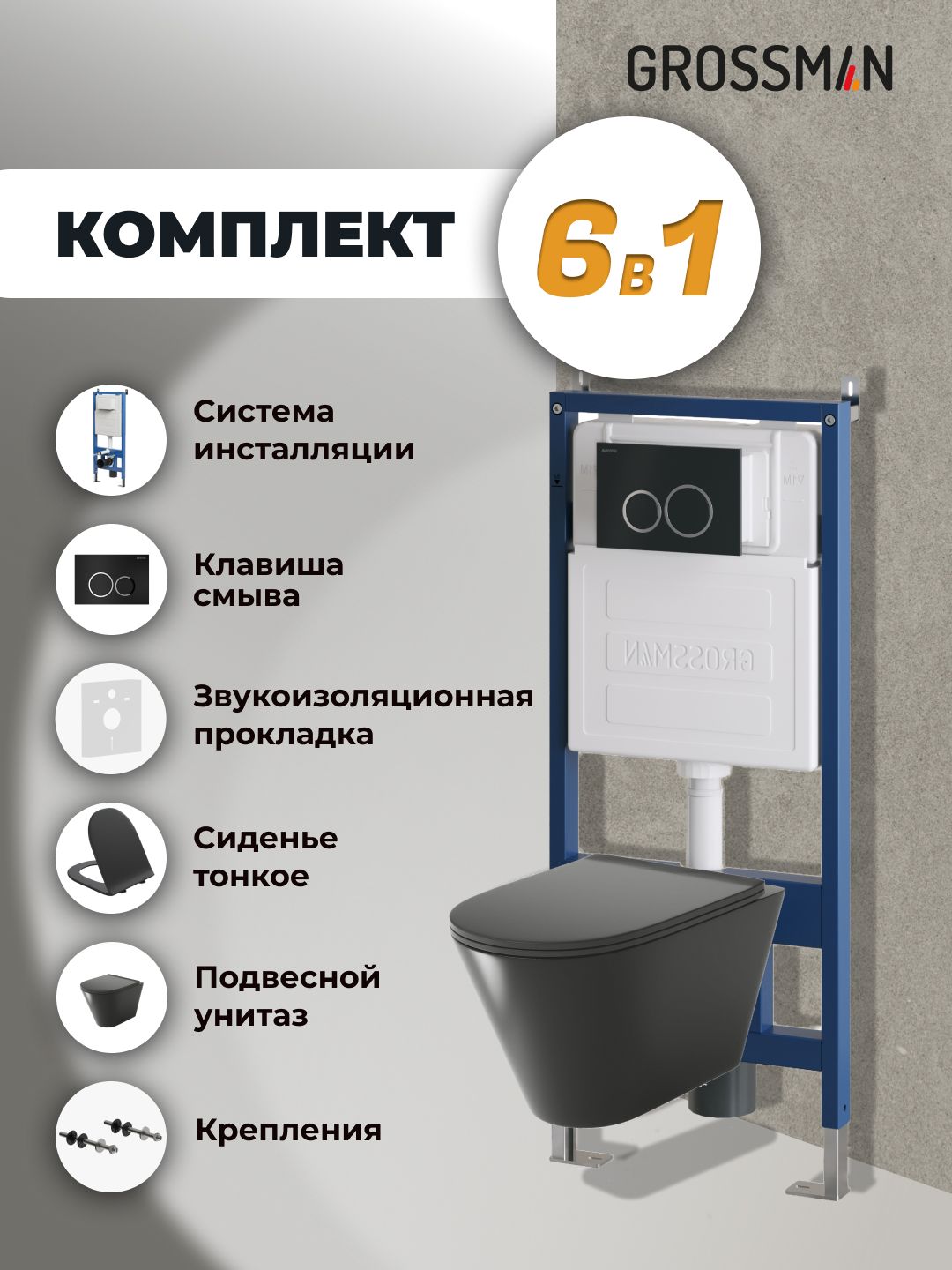 Инсталляция + кнопка смыва + унитаз Grossman Galaxy 97.4477BMS.01.210