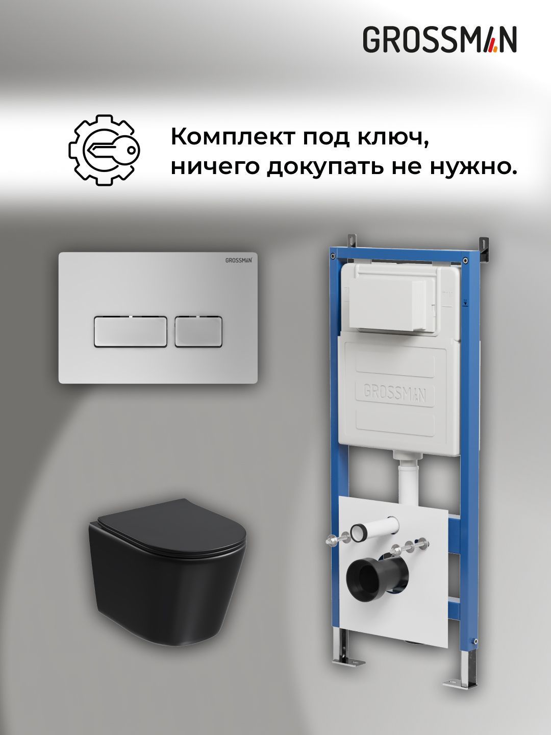 —Инсталляция + кнопка смыва + унитаз Grossman Pragma 97.4477BMSQ.03.110