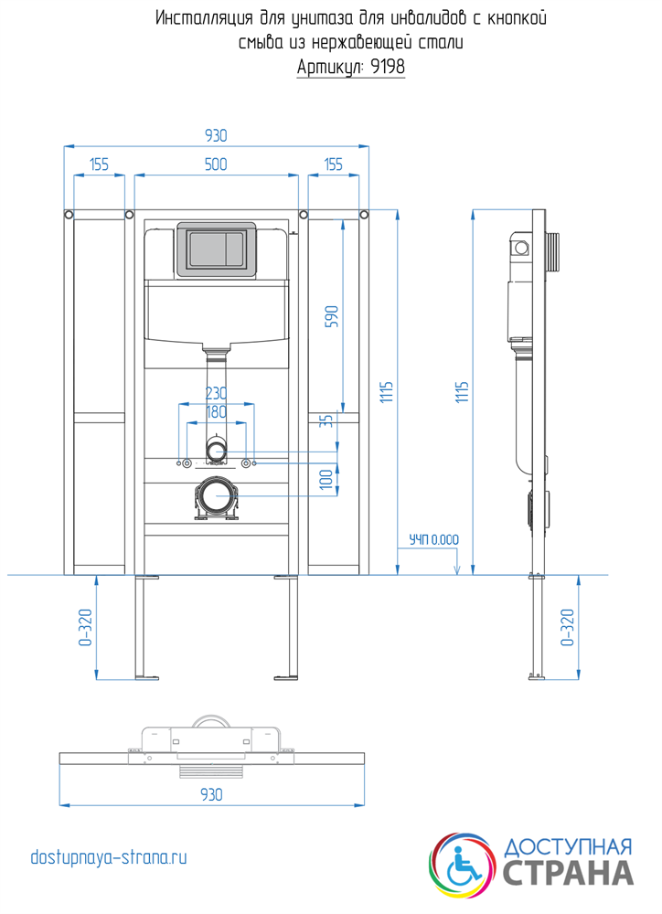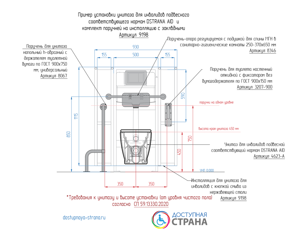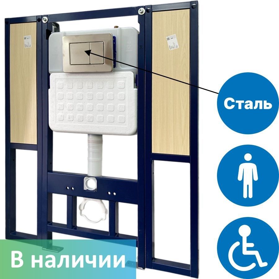 —Инсталляция с закладными для подвесного унитаза для инвалидов с кнопкой смыва из нержавеющей стали Dstrana SANTEYA STEEL 9198
