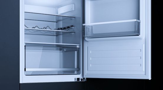 Общий полезный объем холодильника составляет 140 литров, что обеспечивает достаточное пространство для хранения продуктов. Освещение в холодильной камере осуществляется с помощью LED-ламп, что обеспечивает яркое и равномерное освещение, делая продукты легко видимыми. В холодильном отделении имеется три полки из ударопрочного стекла, две из которых можно переставить по высоте для удобства хранения различных продуктов. Также в холодильнике есть три полки на двери и один ящик для овощей и фруктов.