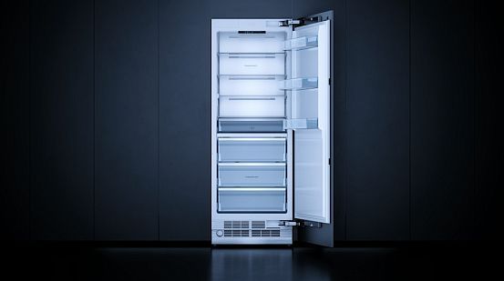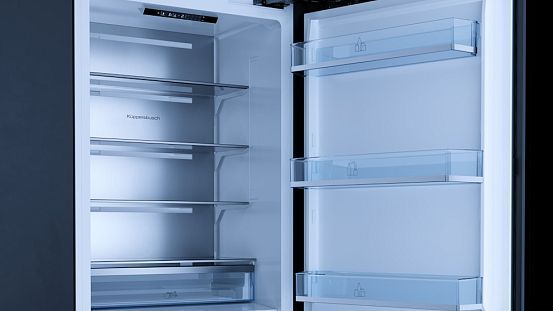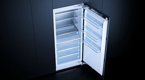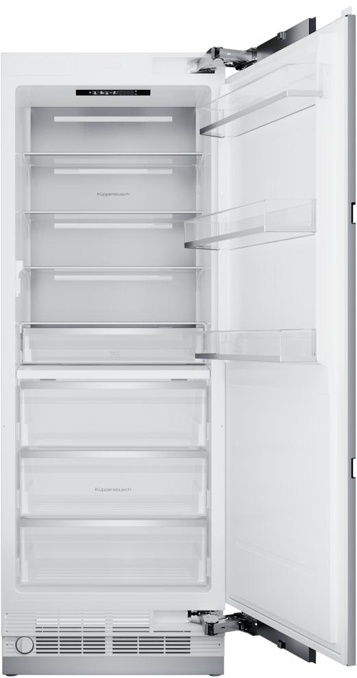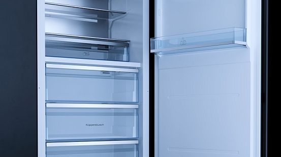 Встраиваемый холодильник Kuppersbusch FKFX 9800.0i E – это воплощение современного минимализма и продуманной эргономики для вашей кухни. Высокий корпус (213,2 см) с шириной 75,6 см и глубиной 59,2 см легко интегрируется в мебельный гарнитур благодаря жесткому креплению фасада и перенавешиваемой двери с правым упором. Отсутствие выступающей ручки подчеркивает лаконичный стиль и обеспечивает полную гармонию с окружающей обстановкой. Светодиодное освещение равномерно освещает все отделения, а цифровой дисплей с электронным управлением и индикацией температуры делает эксплуатацию максимально удобной и интуитивно понятной.