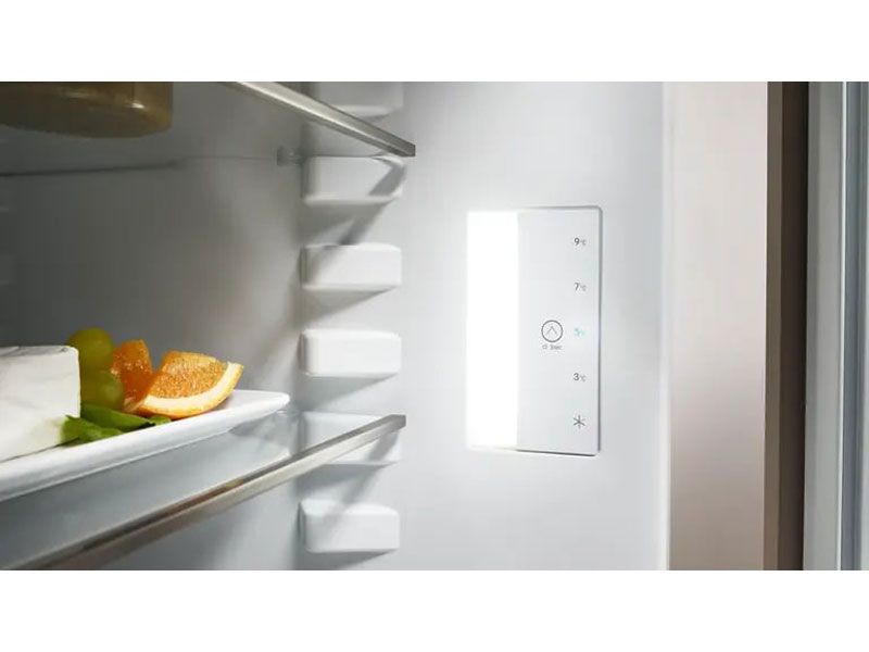 С помощью TouchControl можно легким касанием установить в вашем Liebherr температуру 3, 5, 7 или 9 °C. Очень просто и эффективно. Тонкая кнопка, встроенная в камеру, оставляет много места для хранения свежих продуктов.