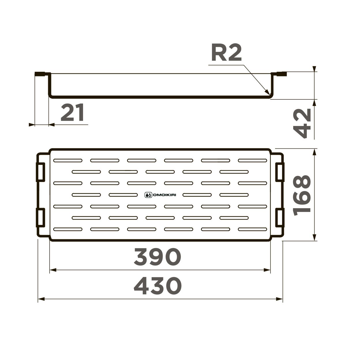 • Коландер CO-06 идеально сочетается с мойками OMOIKIRI с шириной чаши от 392 до 420 мм, глубиной от 50 мм, длиной от 170 мм.